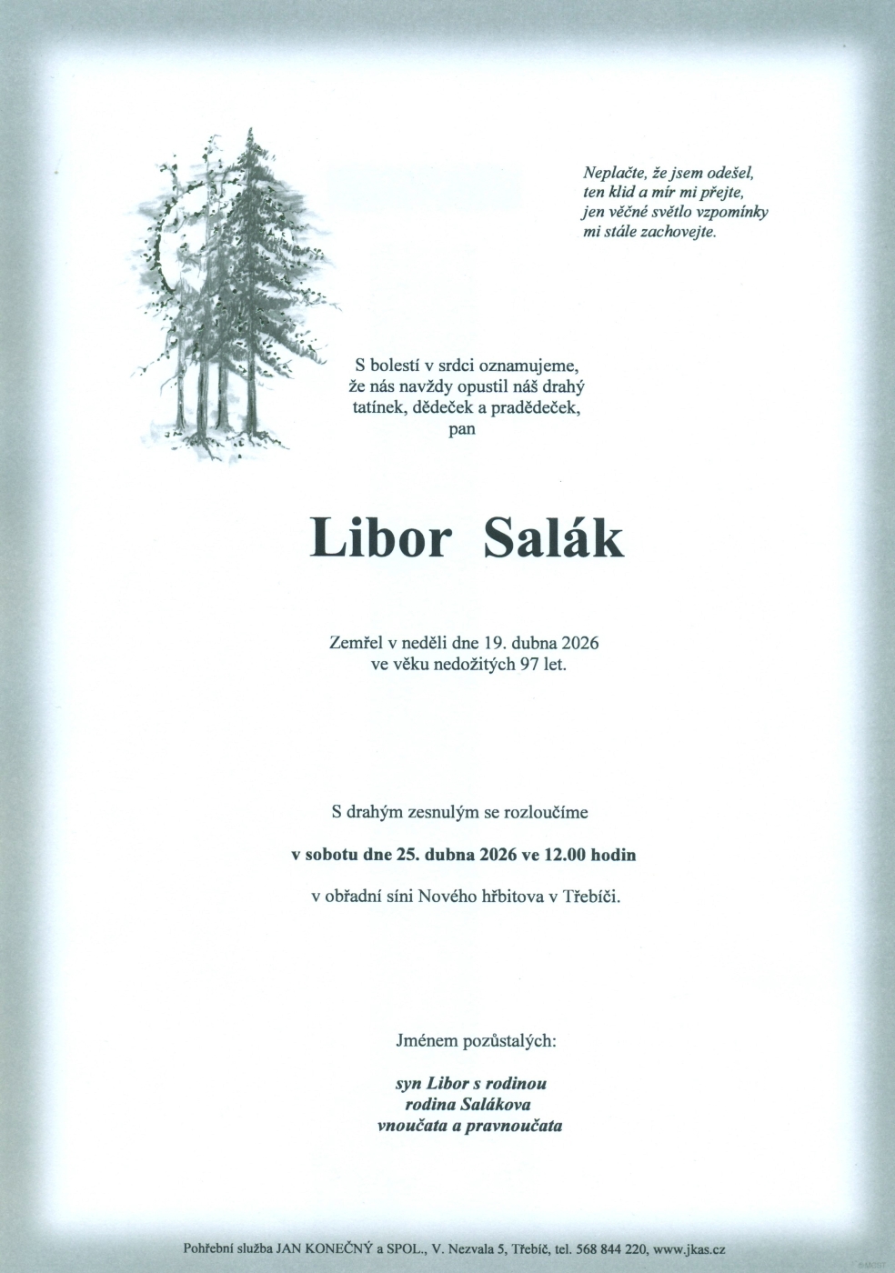 sobota 25. dubna 2026 ve 12.00 hodin, obřadní síň Třebíč Týn